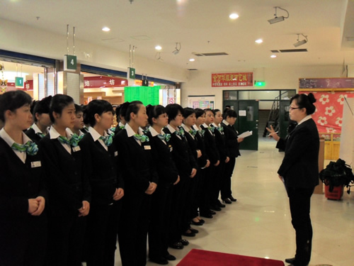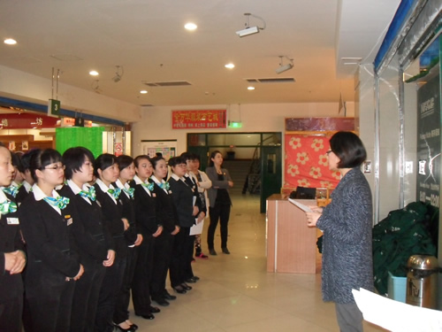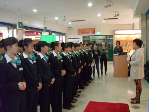 2013年4月9日是一個普通的工作日,但卻是國芳集團收銀部崗位技能管理水平提升和發(fā)展歷程上非常重要的一天,因為今天國芳集團零售板塊蘭州地區(qū)收銀員職業(yè)技能評定工作正式拉開帷幕。早上8點整,在蘭州國芳綜超廣場店正式召開了本次活動的動員會,動員會由收銀部經(jīng)理韓曉麗女士主持,蒞臨現(xiàn)場的公司領導有集團總裁助理、財務總監(jiān)余麗華女士,集團總裁助理、人力資源總監(jiān)孟麗女士,集團培訓經(jīng)理、蘭州百貨人力資源經(jīng)理孫曉輝女士,綜超人力資源經(jīng)理馬琳先生。