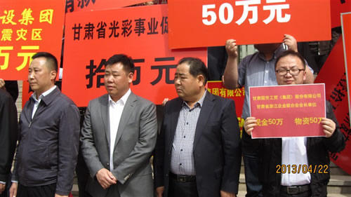 國(guó)難當(dāng)頭,眾志成城,囯芳集團(tuán)素有一方有難八方支援的企業(yè)傳統(tǒng)和優(yōu)良美德。數(shù)次的抗災(zāi)搶險(xiǎn)、扶貧助困、愛心捐助,都有我們囯芳集團(tuán)慈善標(biāo)示“紅圍巾”的飄揚(yáng),以及公司廣大黨員、團(tuán)員、管理干部、供應(yīng)商、員工踴躍捐助的身影,“國(guó)芳”也成為甘肅省非公企業(yè)公益、慈善的一面旗幟。為了支持當(dāng)?shù)亻_展搶險(xiǎn)救災(zāi)工作,經(jīng)集團(tuán)董事會(huì)決定,向?yàn)?zāi)區(qū)捐贈(zèng)價(jià)值50萬元的現(xiàn)金加50萬元的物資,為受難的同胞送去我們的愛心和溫暖。