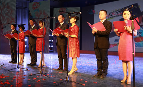 2015年2月9日晚,在蘭州37中(蘭州女子專業(yè)中等專科學(xué)校)5樓藝術(shù)廳內(nèi),國芳集團“你好,2015”2014年終總結(jié)表彰大會暨2015年新年盛典溫馨開演。恰逢國芳集團成立十五周年,晚會現(xiàn)場充滿了溫馨、喜慶和感動。晚會延用了去年的大型LED顯示屏、多組VCR、微信平臺等廣受好評的元素,并創(chuàng)新的融入了中華名族傳統(tǒng)的禮儀文化,漢唐古典舞的壯觀優(yōu)美,員工孩子們《弟子規(guī)》的可愛表演,都在為晚會添加了精彩度的同時,將傳承禮儀所需要的高尚美德這一思想深入的傳達到每一位員工的心中。員工們精心準備的節(jié)目一個比一個精彩,極具藝術(shù)表現(xiàn)力和觀賞性,董事長也被熱烈的氣氛所感染,親自上臺演唱了兩首歌曲,把晚會推向了高潮。最后,國芳集團年終晚會在祥和熱烈的氣氛中落下了帷幕。讓我們共同期待來年的精彩!
