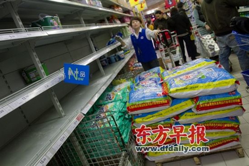 (來源:東方早報) 生產(chǎn)商將上調(diào)日化用品價格的消息持續(xù)發(fā)酵。周五周六,一些上海市民剛剛從盲目搶購食鹽的“糊涂”中清醒,又加入到搶購日化產(chǎn)品的隊(duì)伍中,導(dǎo)致前天和昨天滬上部分超市、賣場的洗衣粉、肥皂、沐浴露等多款日化產(chǎn)品供不應(yīng)求。