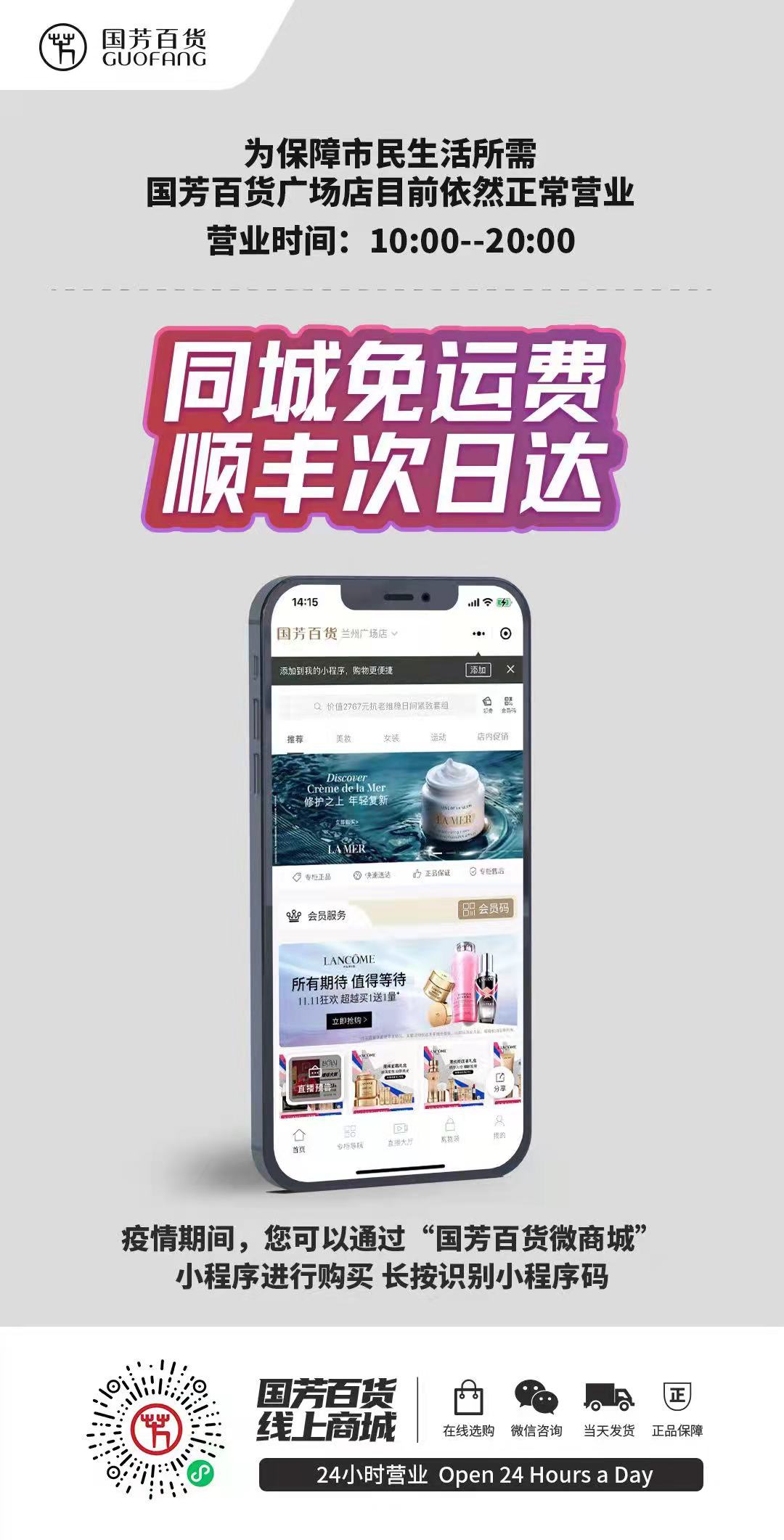 集團(tuán)公司旗下國(guó)芳百貨積極響應(yīng)政府部門(mén)號(hào)召,采取全員居家辦公形式,呼吁顧客免外出、免接觸,通過(guò)國(guó)芳線(xiàn)上商城進(jìn)行商品購(gòu)買(mǎi),同時(shí)增加直播平臺(tái)推廣量,保證安全的基礎(chǔ)上滿(mǎn)足顧客居家購(gòu)物需求。國(guó)芳百貨全體員工努力在特殊的疫情環(huán)境下,為顧客解燃眉之急,想顧客之所想,急顧客之所急!