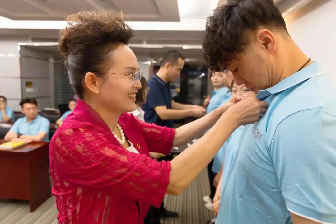 在儀式接近尾聲時,國芳集團的管理干部為我們新一屆的管理培訓生佩戴工卡,從此刻開始,國芳集團又加入了數(shù)十名新生力量。
