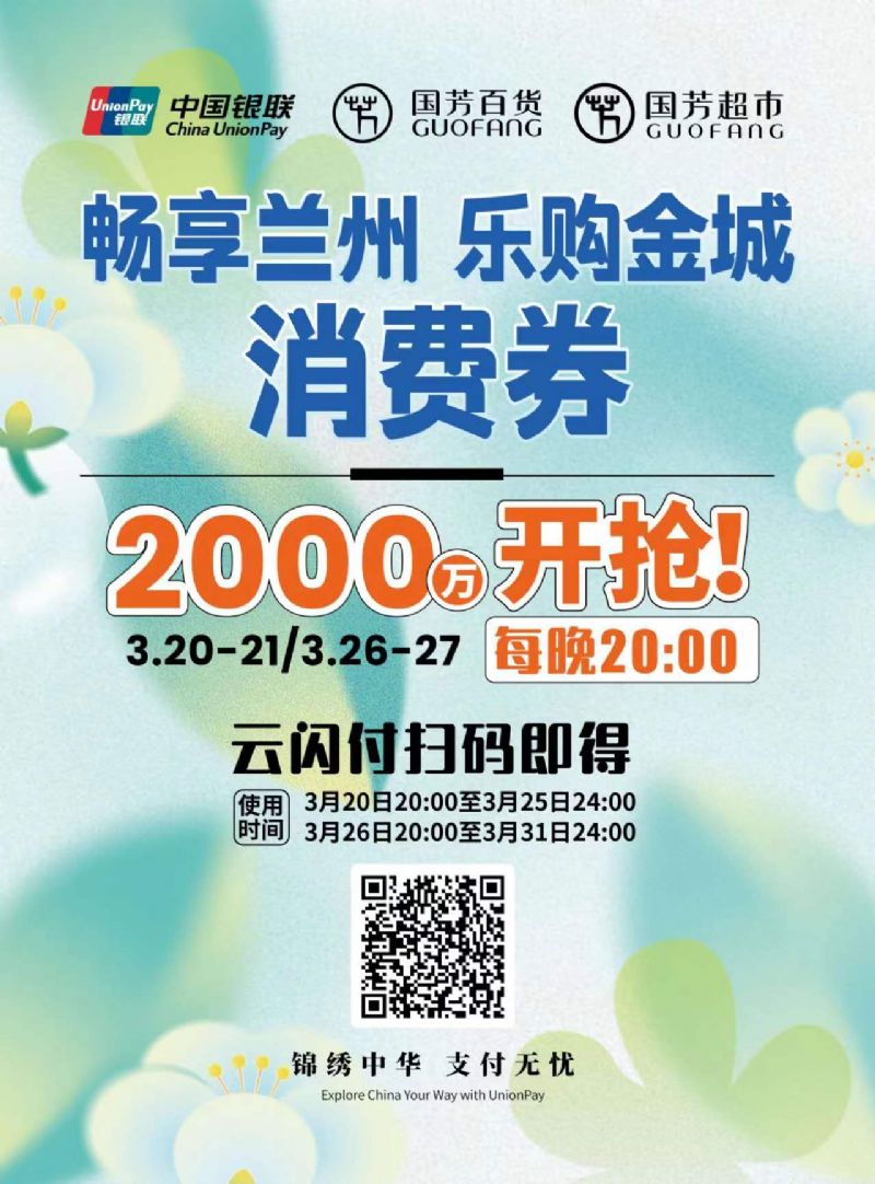 本次消費券具體發(fā)放時間為3月20日至3月31日,將分2個階段4個批次發(fā)放,分別為3月20日、3月21日、3月26日、3月27日的每晚20:00至24:00。消費券涵蓋國芳百貨、國芳超市以及國芳百貨內的餐飲場所等3個場景共計38萬余張,消費范圍覆蓋美妝、服飾、餐飲及國芳超市等多品類消費場景,旨在激發(fā)春季消費潛力,鞏固傳統(tǒng)消費,共同繁榮城關商貿經(jīng)濟,助推零售商業(yè)市場平穩(wěn)發(fā)展。(廣大市民將通過“云閃付”APP領取并核銷,具體活動規(guī)則、適用范圍等信息可登錄“云閃付”APP查看。)