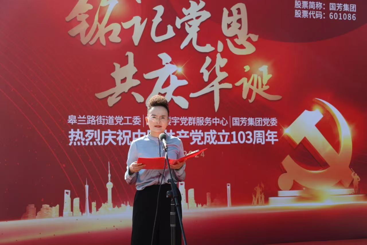為慶祝偉大的中國(guó)共產(chǎn)黨建黨103周年,進(jìn)一步貫徹落實(shí)黨的二十大精神和習(xí)近平總書記關(guān)于黨紀(jì)條例學(xué)習(xí)教育的重要講話和指示精神,豐富黨員和員工文化生活,在七一建黨節(jié)即將來臨之際,國(guó)芳集團(tuán)黨委協(xié)同皋蘭路街道黨工委、國(guó)芳樓宇黨群服務(wù)中心入駐企業(yè)黨組織共同舉辦“銘記黨恩、共慶華誕”慶祝中國(guó)共產(chǎn)黨建黨103周年主題黨日活動(dòng)。